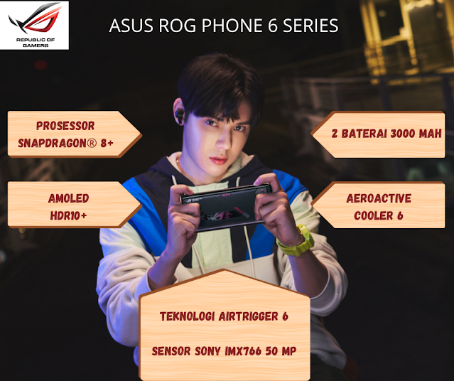 ASUS ROG ( Republic of Gamers ) adalah sub merek ASUS yang dihadirkan untuk mengembangkan inovasi hardware dan software handphone gamer yang terbaik didunia. ASUS ROG Phone 6 series ini merupakan inkarnasi sang legenda ponsel gaming yang tak tertandingi dengan desain yang futuristik. Hadir dengan 2 pilihan tipe yaitu ROG Phone 6 dan ROG Phone 6 pro.